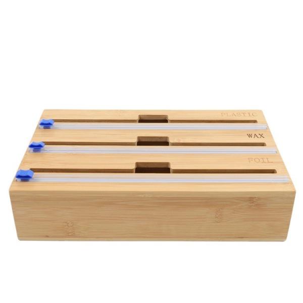 Rectangle Wall Mount 3 In 1 Kitchen Wrap Dispenser Bamboo Aluminum Foil Magnetic Plastic Wrap Dispenser Images |